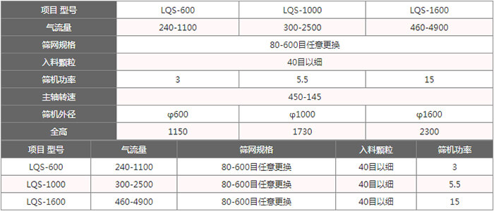 該機適合80-530目有網各種粉狀物料篩選分級,其篩分效率高、產量大、自動進料排料、連續作業、無污染,使以往用各種振動篩難以進行高細度精密篩分作業成為易事。經過對120-180目輕鈣、300目重鈣、400目活性鈣、300目山楂粉、320-500目鋅粉、500目氧化鐵黑、氧化鐵紅、120-160目中藥粉、180-270目石英粉等物料的篩分使用,測得每平方米篩網面積每小時產量均在一噸左右,同時測得篩分效率在95%以上,空氣含塵量低于10mg/m3。