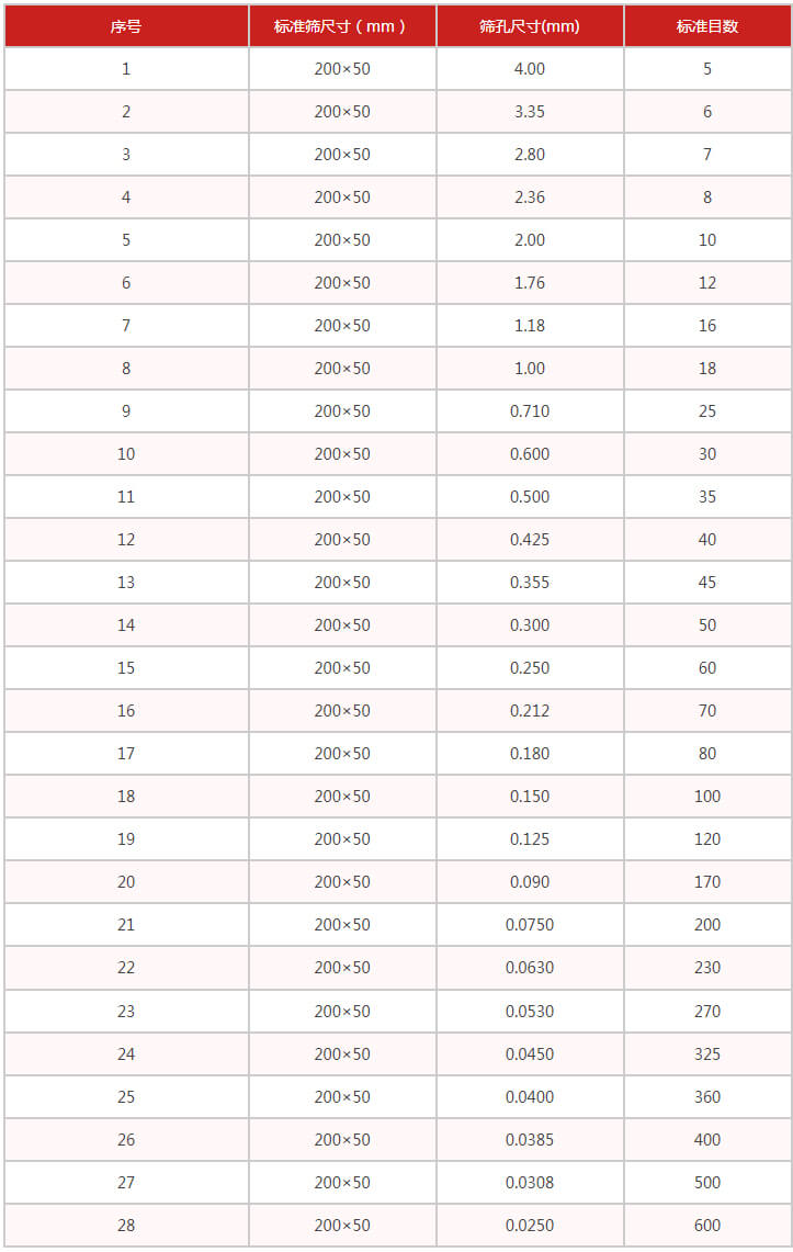 200x50標準篩尺寸mm
